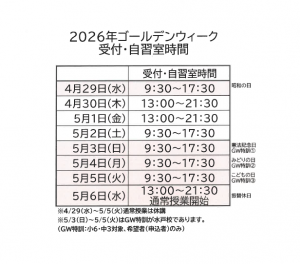 東進育英舎では、4月29日(水)から5月5日(火)までの