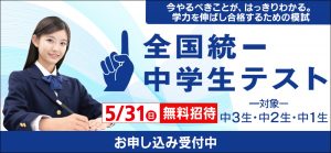 全国統一中学生テストは、5月31日(日)です。